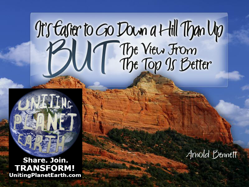 It’s easier to go down a hill than up but the view from the top is better. – Arnold Bennett